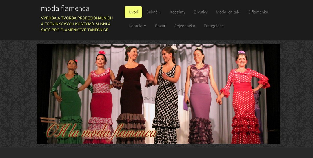 Krásné kostýmy na flamenco vyrábí krejčovství OH la fashion pro tanečnice na vystoupení a tréninky. Vše originální od návrhu přes materiál až po samotnou výrobu. Aby flamenco sukně pracovaly s tanečnicí, spolupracuje krejčovství OH la fashion s tanečnicí a lektorkou tance. Vaše flamenková sukně bude s Vámi tančit . Přidejte jenom vášeň a zážitek z tance bude dokonalý.